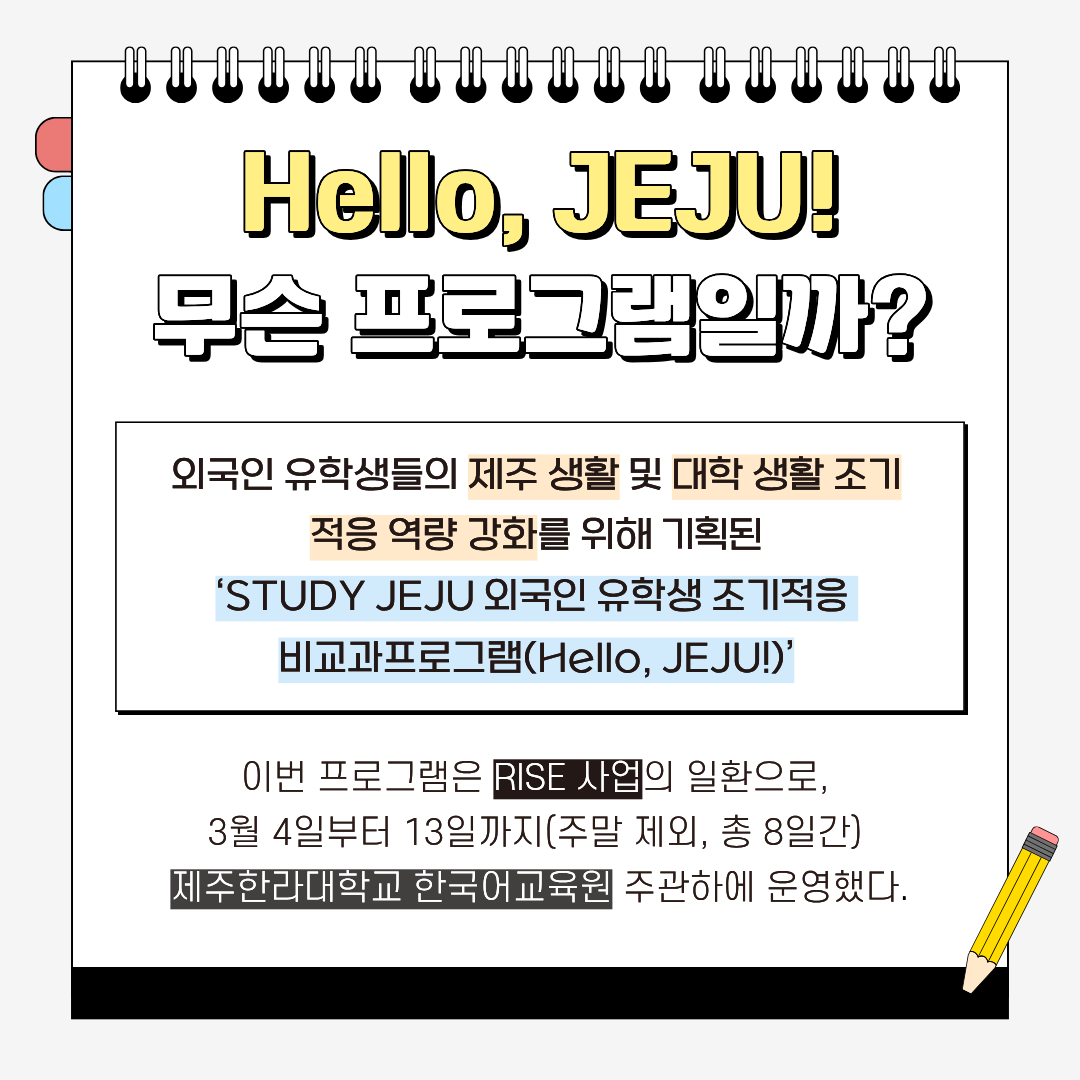 [서포터즈] 유학생 조기적응 프로그램 STUDY JEJU, 'Hello, JEJU' 참여 후기